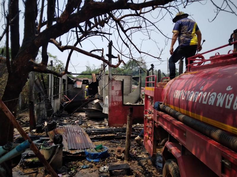 งานป้องกันและบรรเทาสาธารณภัย เทศบาลตำบลพังโคนศรีจำปา ได้รับแจ้งเหตุเพลิงไหม้บ้านเรือนประชาชน ณ หมู่ที่ 13 ต.พังโคน อ.พังโคน จ.สกลนคร