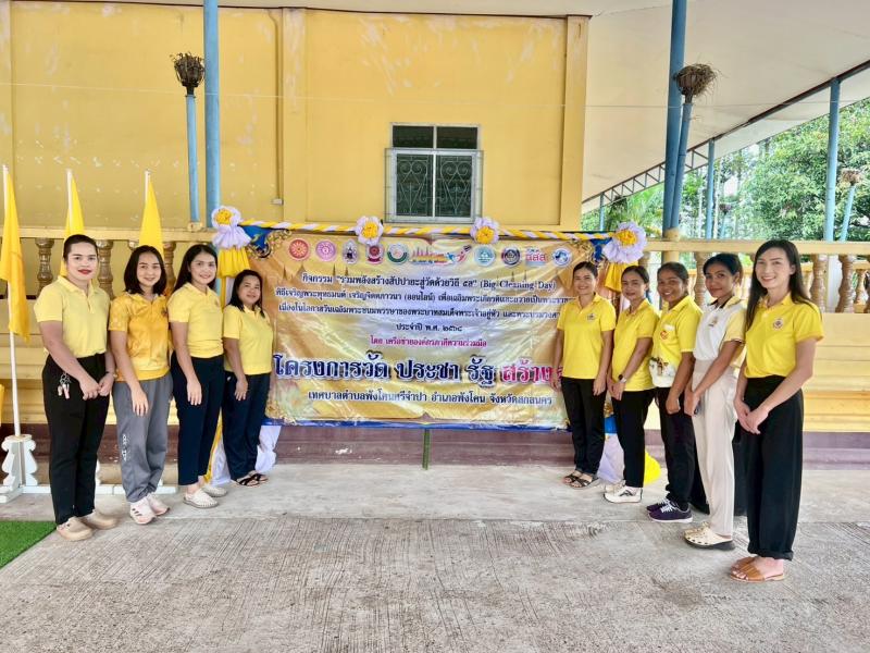 วันที่ 24 กรกฎาคม 2568 นายวัฒนา วิชะนา นายกเทศมนตรีตำบลพังโคนศรีจำปาพร้อมด้วยคณะผู้บริหาร สมาชิกสภาเทศบาล ปลัดเทศบาล หัวหน้าส่วนราชการ พนักงานเทศบาล ร่วมกับ ผู้นำชุมชนและนักเรียนโรงเรียนบ้านดอนตาลโนนสูง ได้จัดกิจกรรม “รวมพลัง สร้างสัปปายะสู่วัดด้วยวิถี 5ส.” (Big Cleaning Day) เพื่อเฉลิมพระเกียรติและถวายเป็นพระราชกุศลเนื่องในโอกาสวันเฉลิมพระชนมพรรษาพระบาทสมเด็จพระวชิรเกล้าเจ้าอยู่หัว 28 กรกฎาคม 2568 ณ วัดสายแก้ว บ้านดอนตาล-โนนสูง ตำบลพังโคน อำเภอพังโคน จังหวัดสกลนคร